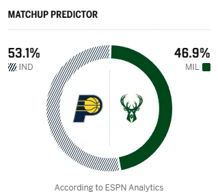 赛前,美媒ESPN预测本场比赛,步行者胜率为53.1%,雄鹿胜率为46.9%。